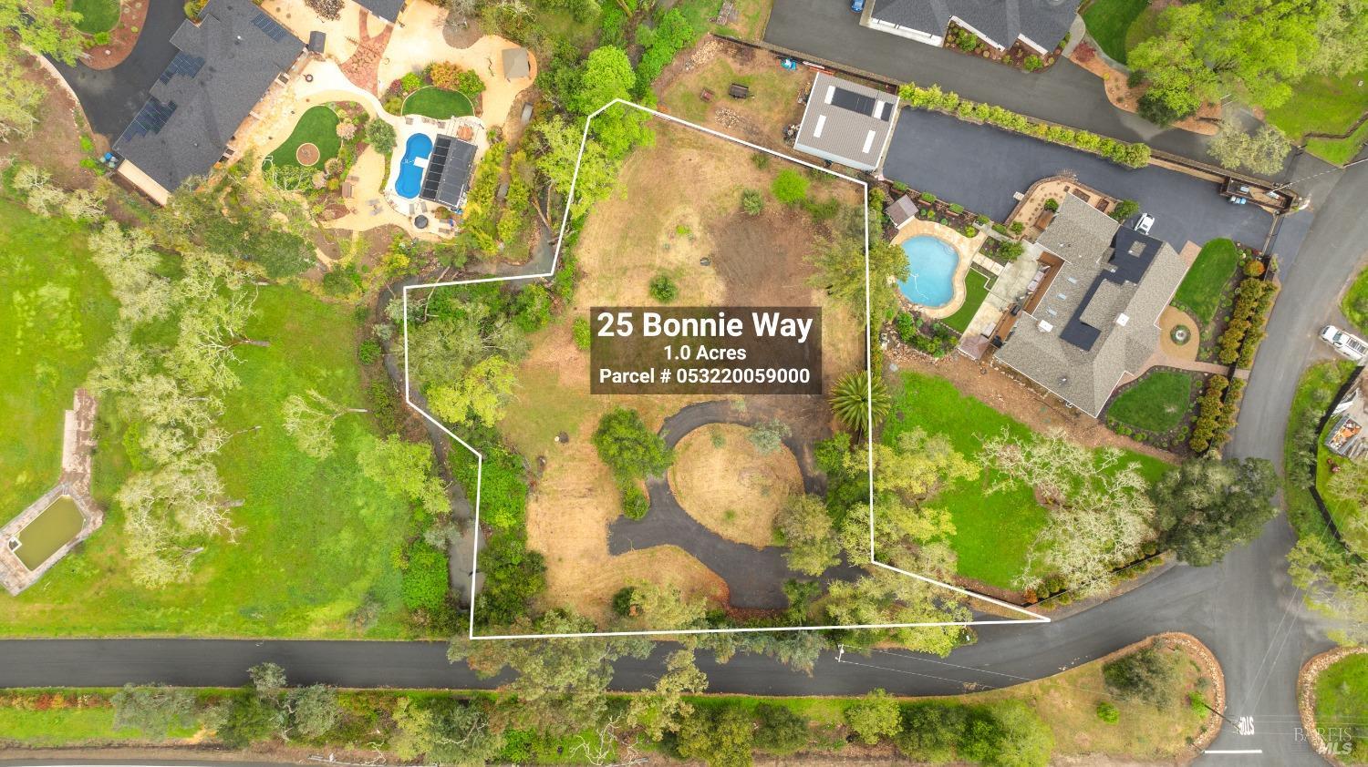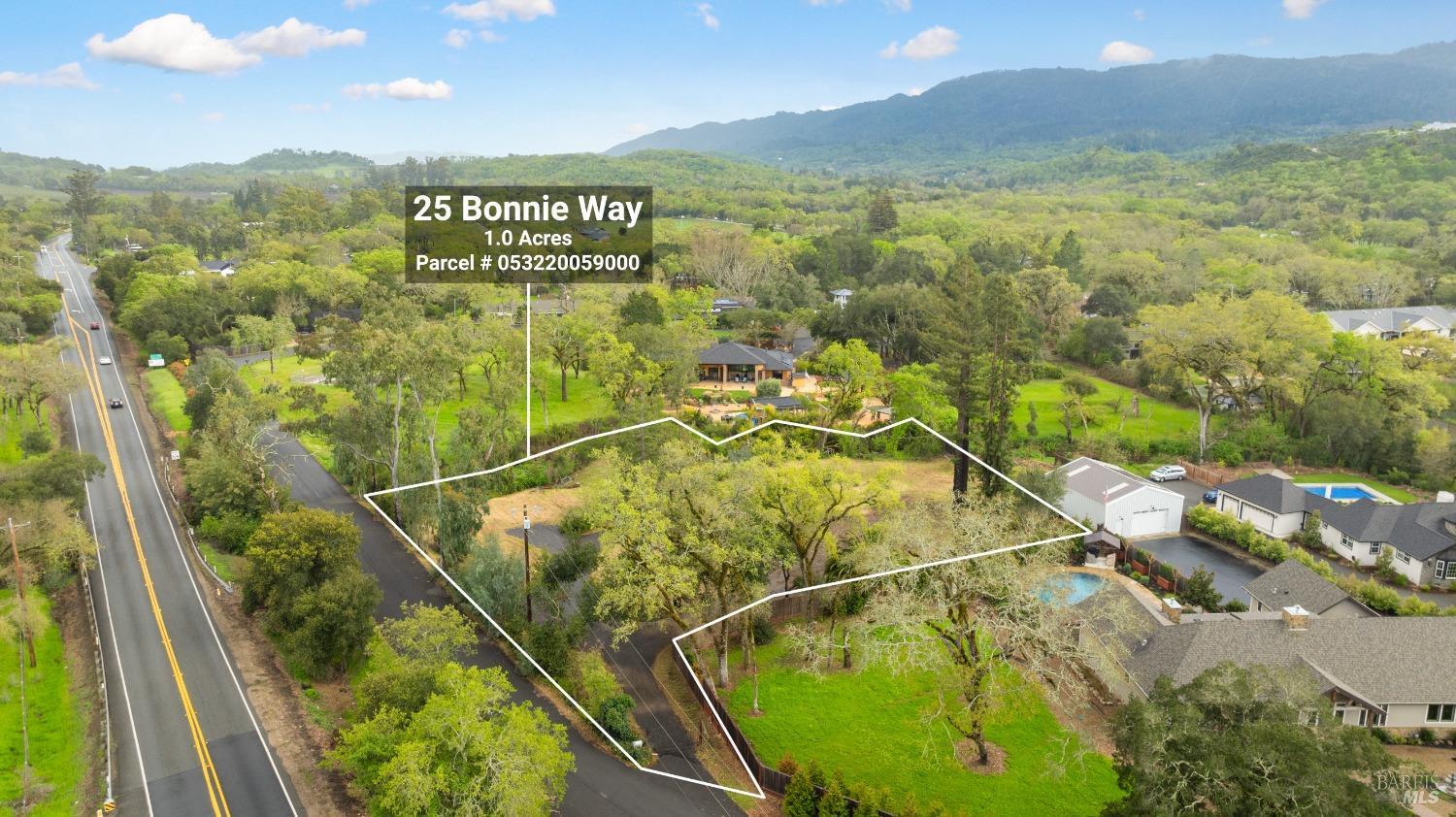 25 Bonnie Way offers just over an acre of serene, oak-studded, level land to build a custom estate in the heart of Wine Country. The property includes an existing well and the potential for public water access, allowing for a seamless foundation to bring your architectural ambitions to life. Formerly home to a 4-bedroom, 3-bathroom residence, the site holds promise for a reimagined legacy home or contemporary country haven. Perfectly situated within minutes of Glen Ellen's renowned dining and boutique wineries, the acclaimed vineyards of Kenwood, and the vibrant cultural allure of Sonoma, this location places you at the epicenter of Wine Country while just over an hour from the heart of San Francisco.